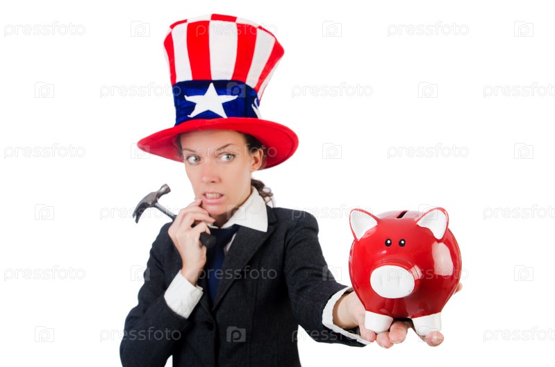 Предприниматель с копилкой и молотком