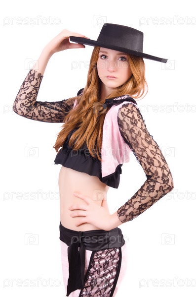 Рыжая женщина в костюме тореадора