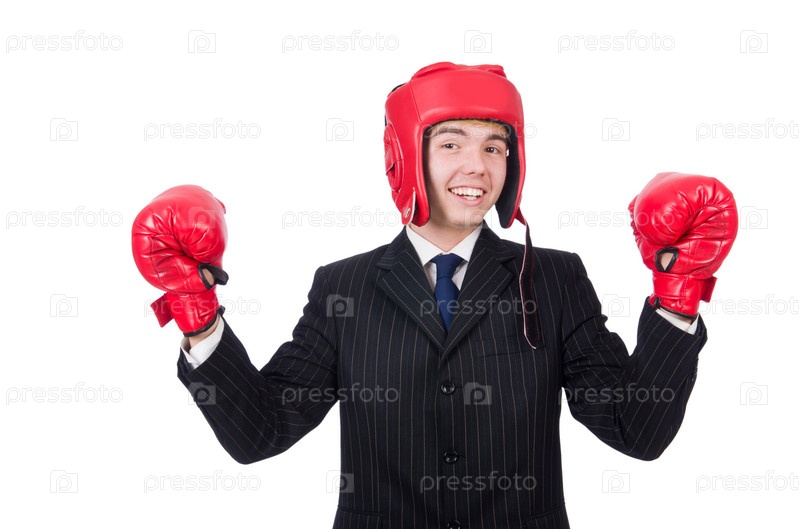 Смешной бизнесмен в боксерских перчатках