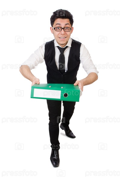 Забавный человек с большим количеством папок