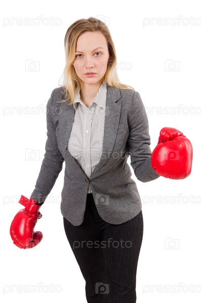 Бизнес-леди с боксерскими перчатками