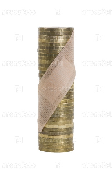 Стопка медных денег на белом фоне