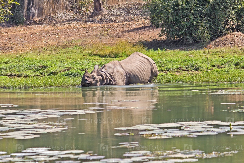 Зоопарк Нанданканан. Носорог хочет искупаться в водоеме
