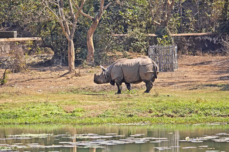 Зоопарк Нанданканан, Орисса. Носорог стоит на берегу водоема
