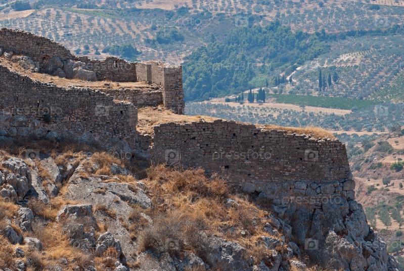 Руины крепости в древнем Коринфе на склоне горы