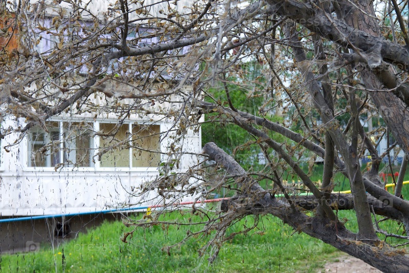 Яблоня, пораженная вредителем горностаевая (яблонная) моль