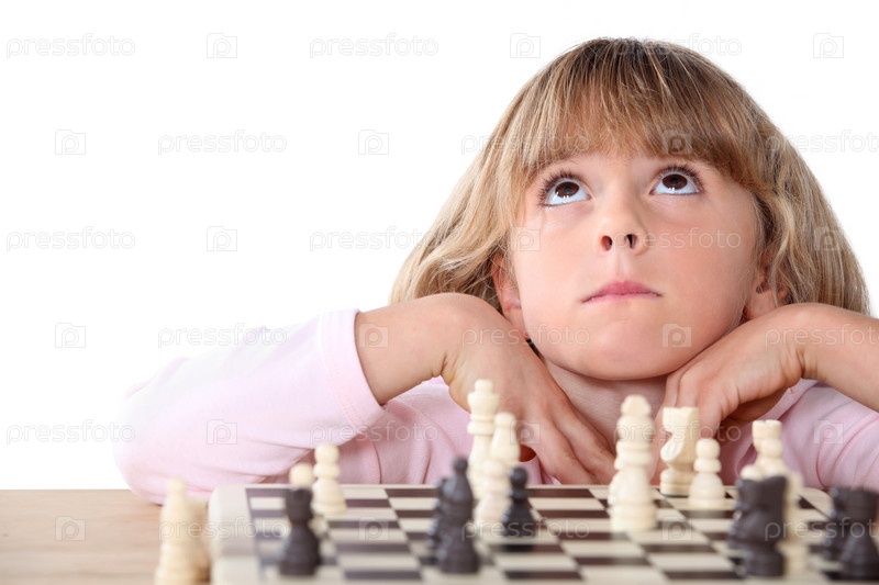 Маленькая девочка играет в шахматы