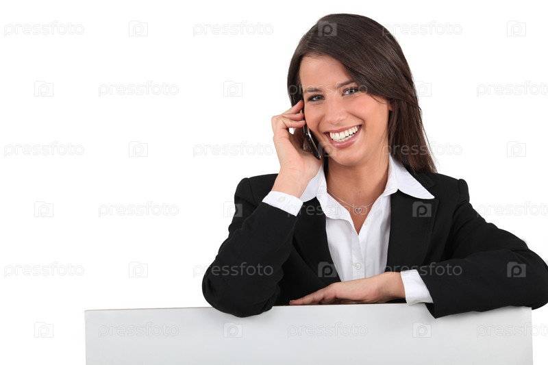 Женщина с телефоном за стойкой