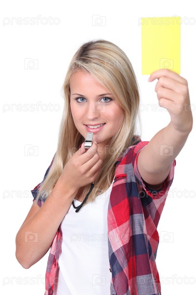 Девушка показывает желтую карточку