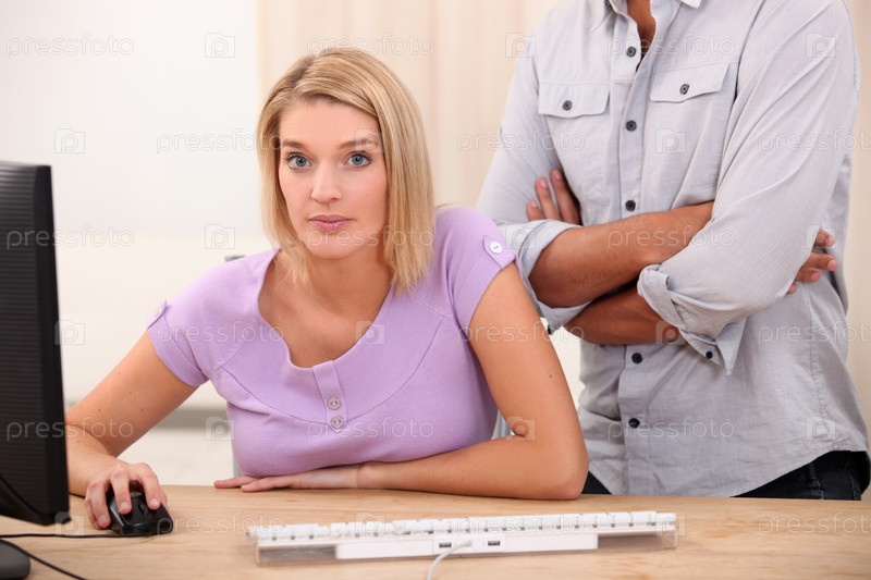 Женщина работает на компьютере