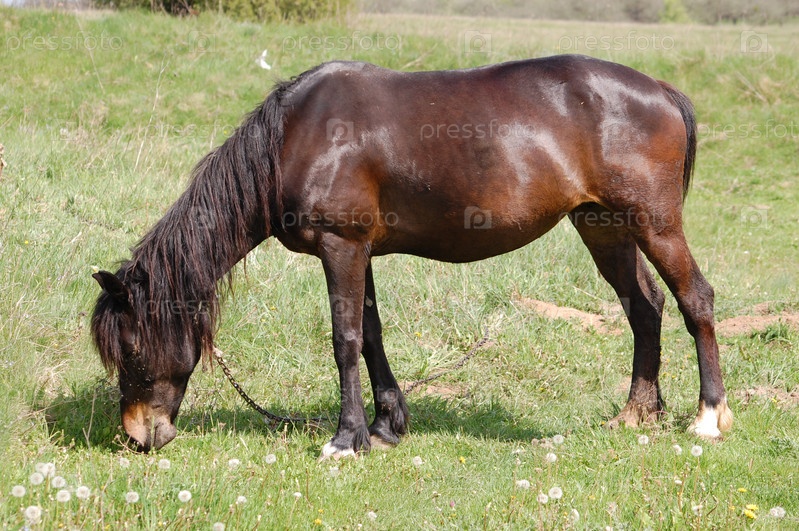 Лошадь на зеленом лугу