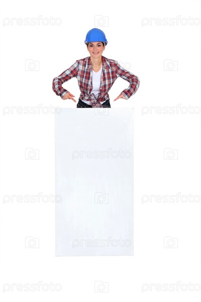 Строитель с баннером