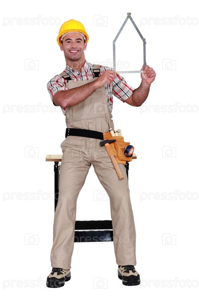 Плотник с линейкой в форме дома