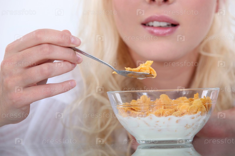 Женщина ест хлопья
