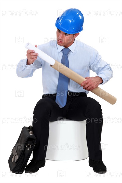 Инженер вытаскивает чертеж из тубуса