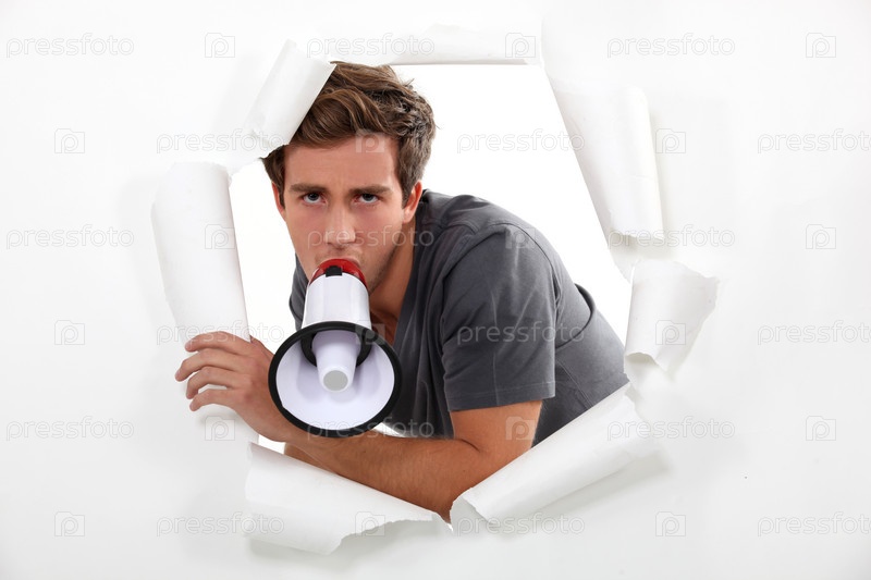 Мужчина кричит через мегафон