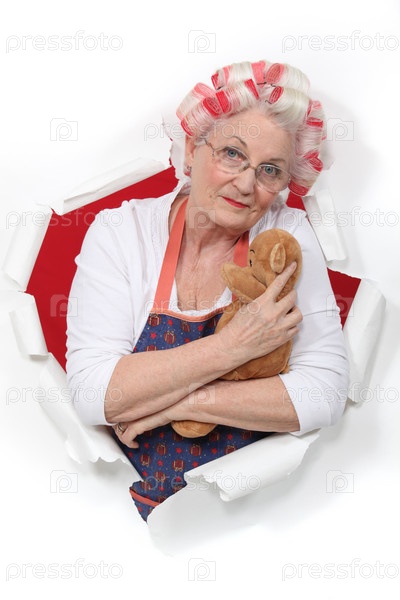 Пожилая женщина с игрушкой