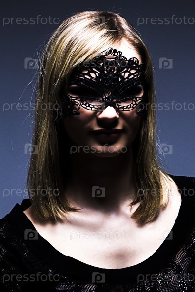 Девушка в маске из черного кружева
