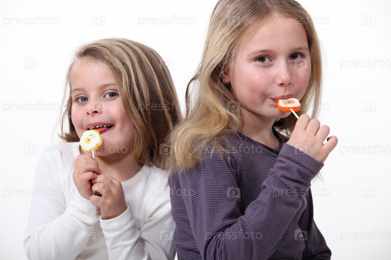 Две сестры едят леденцы на палочках
