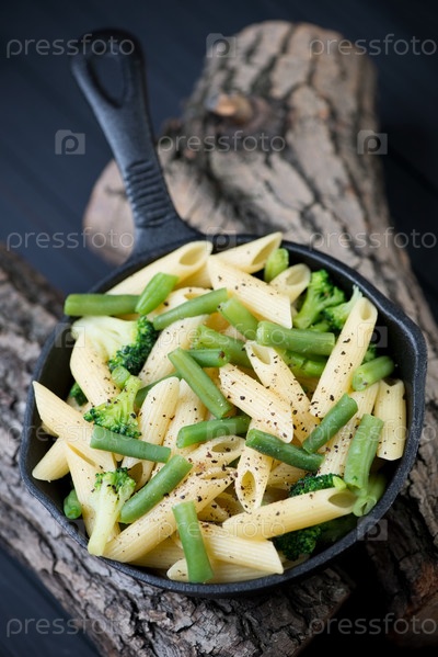 Паста пенне с овощами в сковороде