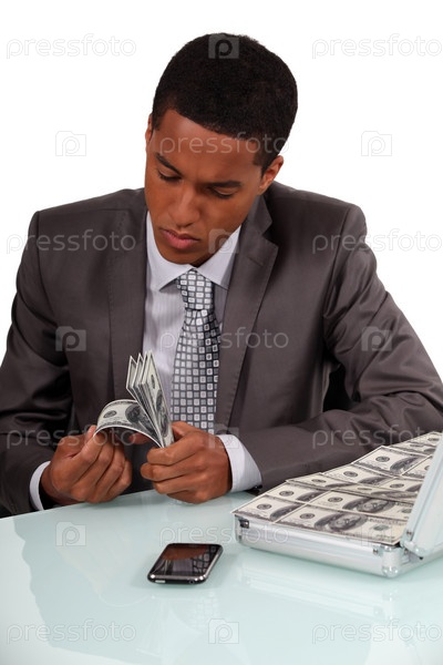 Мужчина считает банкноты