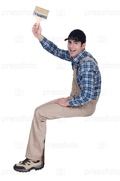 Счастливый маляр с кистью