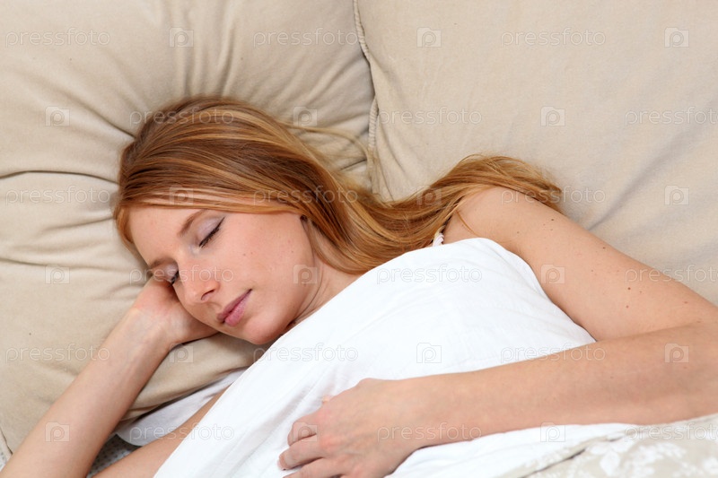 Молодая женщина спит в постели