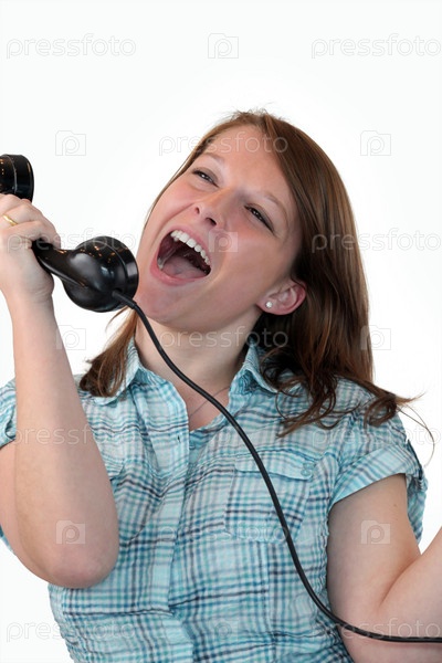 Женщина поет в телефонную трубку