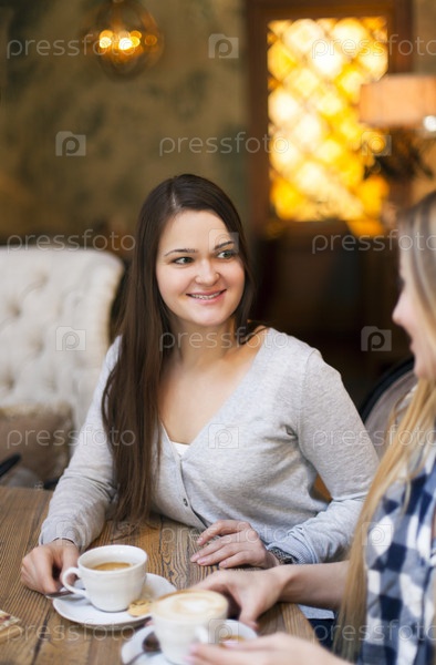 Девушки пьют кофе в кафе