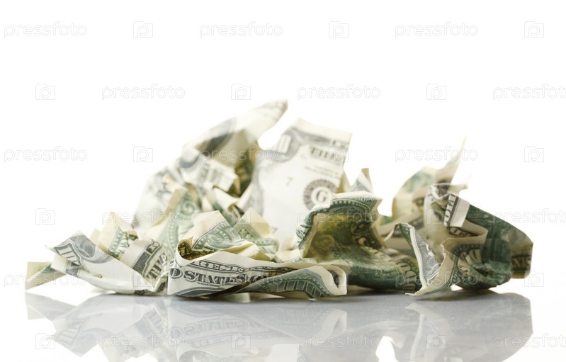 Мятые деньги. Изолированы на белом фоне