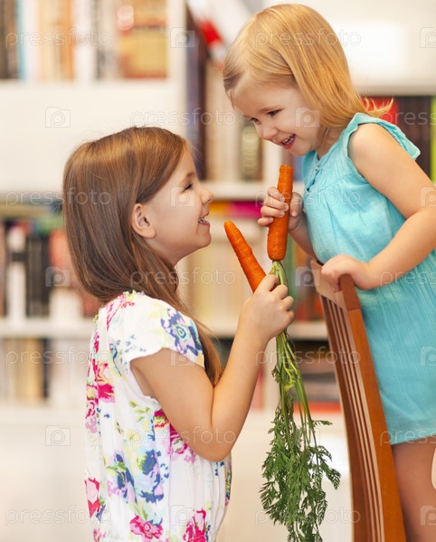 Улыбающиеся девочки с морковью