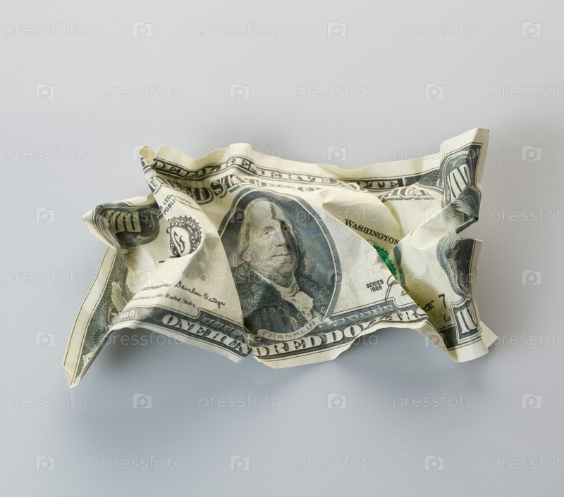 Мятые деньги на сером фоне