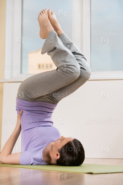 Женщина занимается йогой