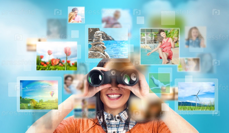 Портрет молодой женщины с медиа-файлами