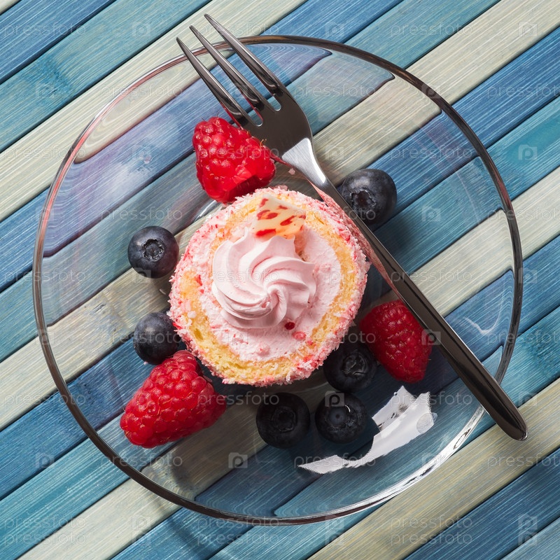 Пирожное с черникой и малиной