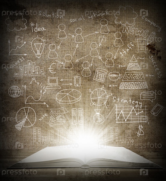 Открытая книга с летающими иконками
