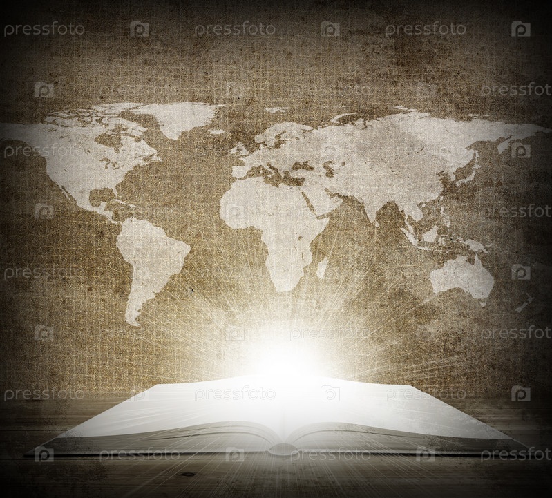 Открытая книга и карта мира
