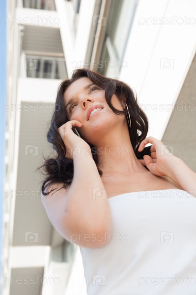 Бизнес-леди говорит по телефону на открытом воздухе