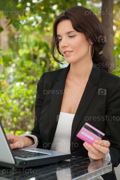 Женщина с ноутбуком на свежем воздухе