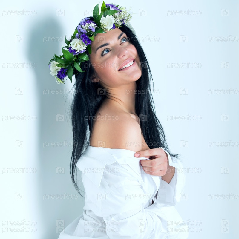 Красивая женщина в венке из цветов