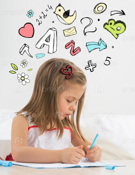 Маленькая девочка делает уроки