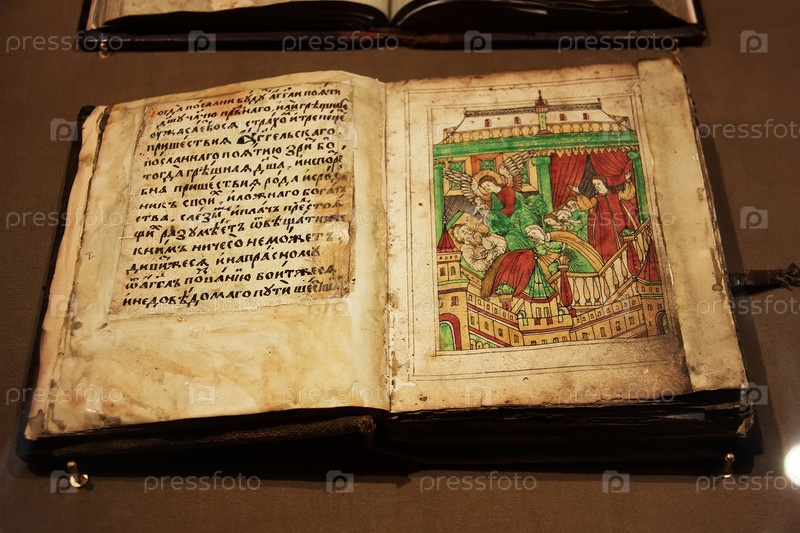 Открытая церковная книга в витрине музея