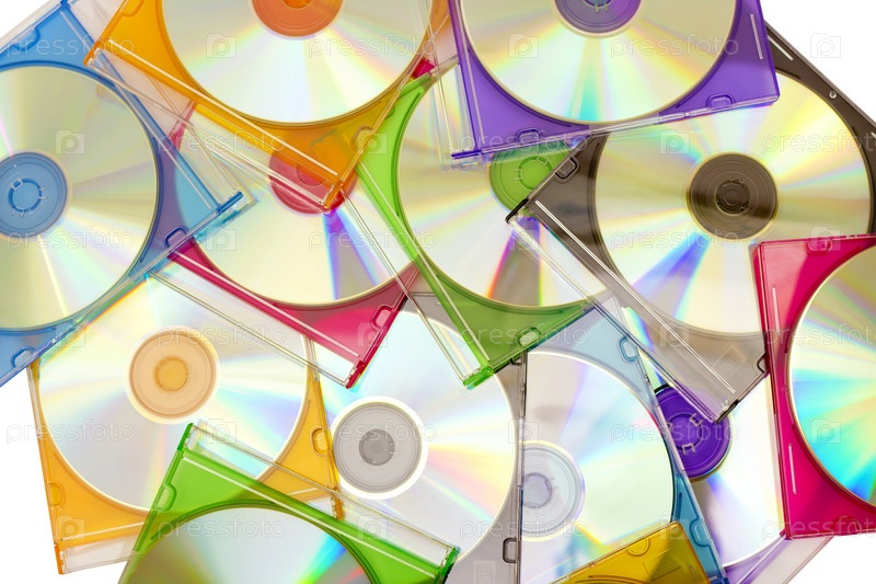 Компакт-диски в цветных упаковках крупным планом