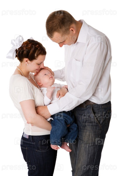 Счастливая семья на белом фоне
