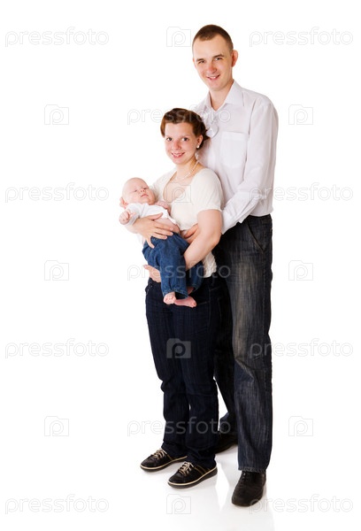 Счастливая семья на белом фоне