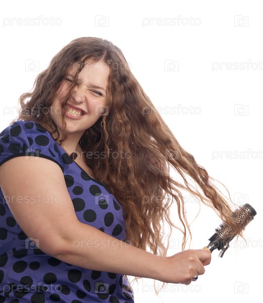 Женщина мучается с длинными волосами