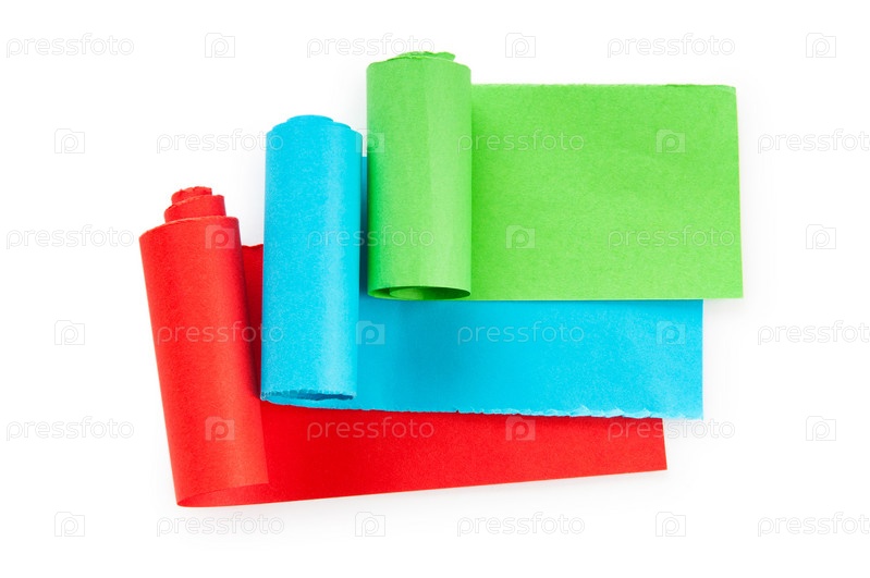 Рулоны цветной бумаги на белом фоне