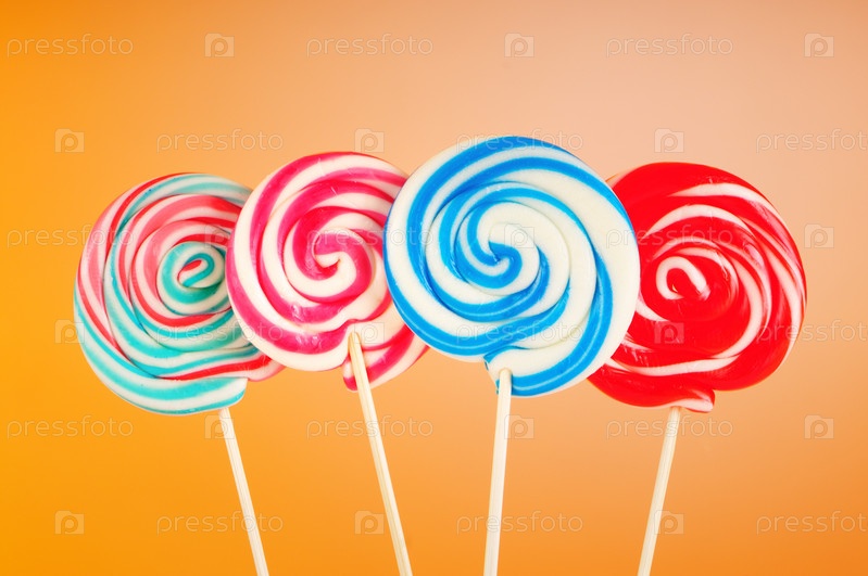 Яркие леденцы на оранжевом фоне