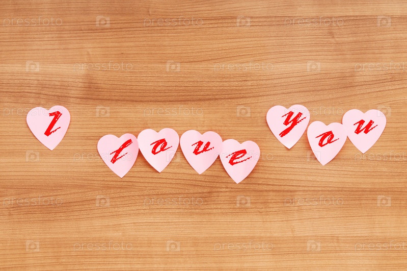 Надпись "я тебя люблю" на белых сердечках