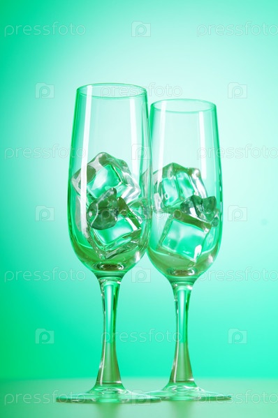 Два бокала со льдом на зеленом фоне